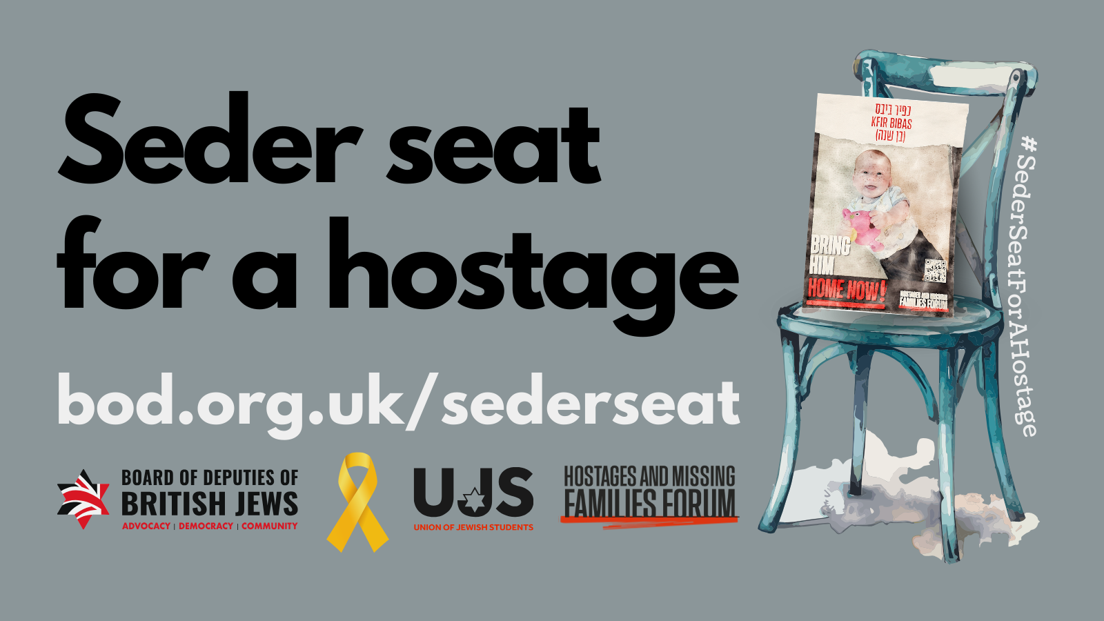 Made to be shared, this is a campaign built for the social media era, and the Board has asked people to ‘share pictures of their laid Seder Table with the seat set aside for a chosen hostage, along with the #SederSeatForAHostage hashtag.’